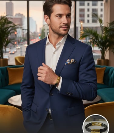 Elegance and luxury are the foundation of OKIKIs. Our custom suits are tailored with precision, using only premium fabrics and attention to every detail. Our bracelets and cufflinks are crafted to be both stylish and durable, combining sophistication with practicality. We aim to redefine what luxury feels like, making it accessible, personal, and memorable. Each product reflects a dedication to high standards, timeless design, and the refined tastes of individuals who value quality above all.